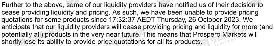 邮件中还告知,“浦华证券的流动性供应商决定停止为某些产品提供报价,预计浦华证券将很快失去提供其所有产品价格报价的能力。”